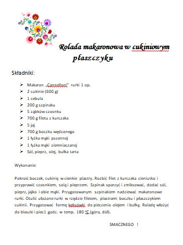 Przygotowana przez nas potrawa to „rolada makaronowa w cukiniowym płaszczyku“.