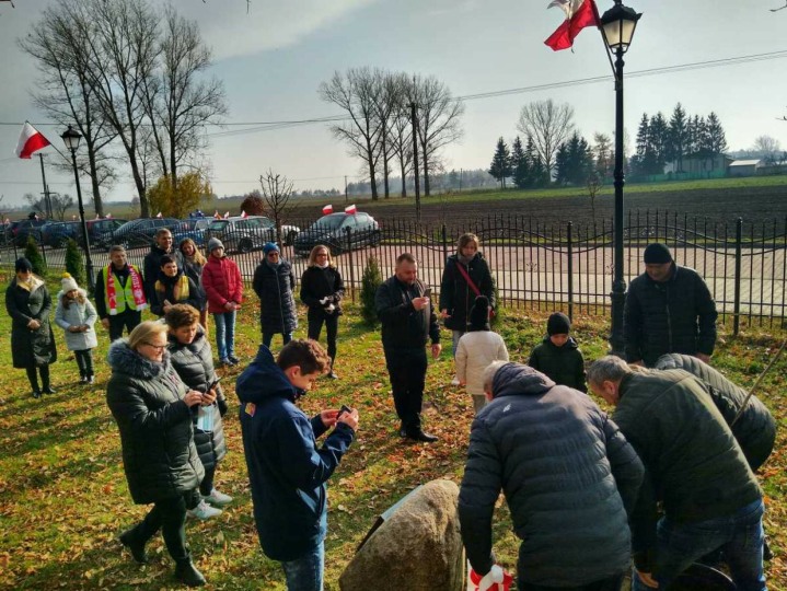 Jak co roku 11 listopada w całej Polsce obchodzone jest Święto Odzyskania Niepodległości. W tym roku była to 103 rocznica. My również zorganizowaliśmy nasze lokalne uroczystości. Była to także okazja do innego ważnego wydarzenia, a mianowicie posadzenia Dębu Pamięci dla uhonorowania pochodzącego z naszej miejscowości doktora kapitana rezerwy Czesława Wroczyńskiego, który zginął z rąk sowietów w Katyniu w 1940 roku. Na ten cel prowadzona była zbiórka funduszy, dzięki czemu mogliśmy sfinansować tę inicjatywę, W tym miejscu należą się serdeczne podziękowania wszystkim tym, którzy wsparli nas w tym działaniu. Dziękujemy również wszystkim, którzy świętowali z nami ten dzień, którzy wzięli udział w rajdzie samochodowym oraz osobom, które pomagały w przygotowaniu uroczystości. To było wspaniałe przeżycie i na pewno będziemy kontynuować tę inicjatywę, tak, aby stała się ona tradycją naszej Gminy.