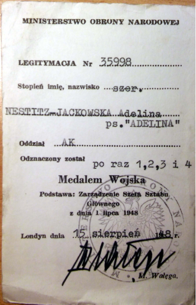 Adela z Komorskich Nostitz Jackowska została odznaczona pośmiertnie MEDALEM WOJSKA